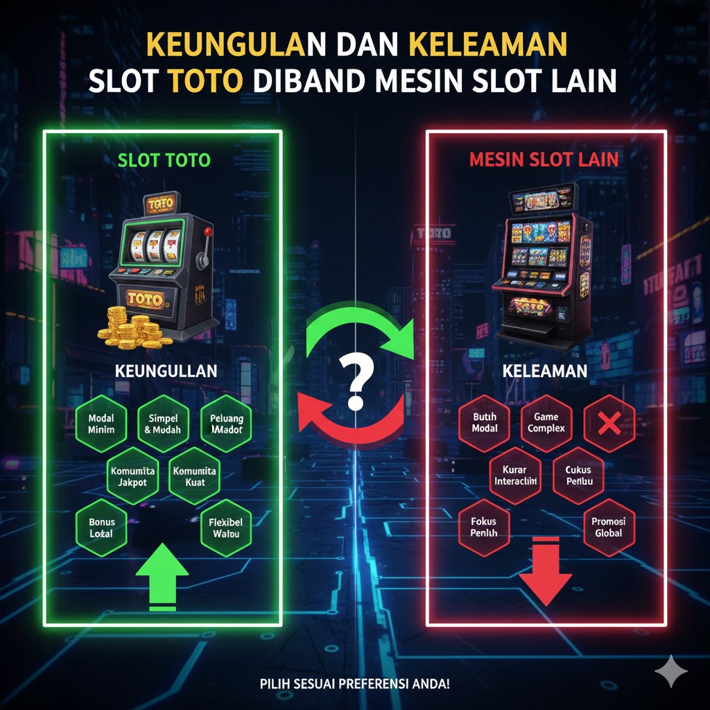 Slot Toto merupakan salah satu jenis permainan mesin slot yang dikenal di Indonesia. Meski masih terkait dengan dunia hiburan digital, memahami keunggulan dan kelemahan Slot Toto dibanding mesin slot lain membantu pengguna menilai berbagai fitur dan mekanisme yang ditawarkan. Artikel ini membahas kelebihan dan kekurangan Slot Toto secara objektif, menyoroti faktor desain, mekanisme, pengalaman pengguna, dan aspek teknologinya.